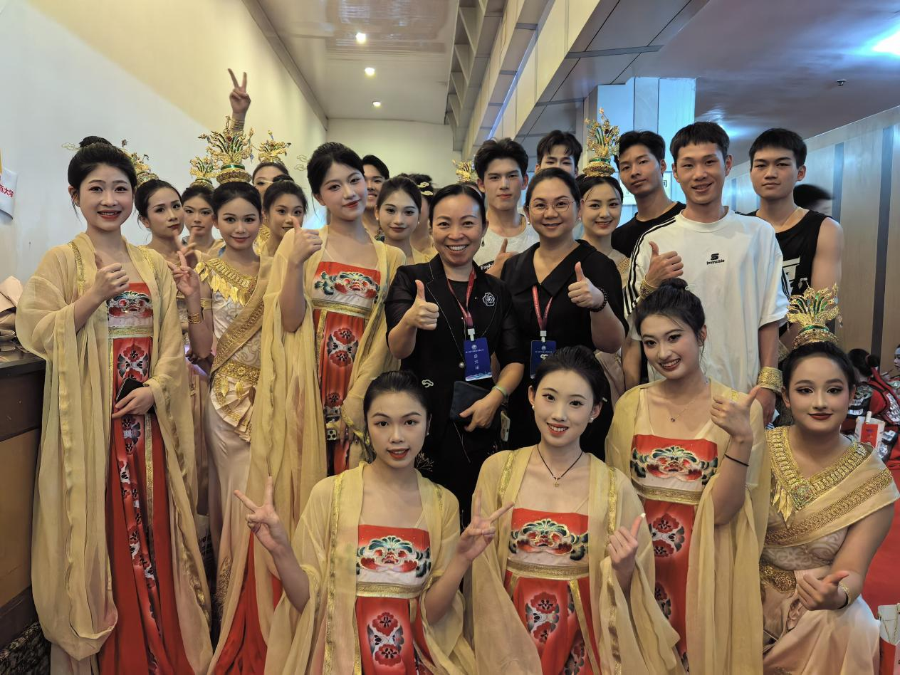 本次大赛从民航服务形象与礼仪、民航知识与英语、民航安全服务技能、团体表演四个赛项展开团体赛的竞技。太阳成集团tyc高度重视,经过层层选拔,专业老师进行一个多月的专业技能培训指导和赛前模拟来帮助参赛学子能在比赛中取得佳绩。在团体表演赛中,舞蹈队的25名员工精彩演绎舞蹈作品《缅花·盛唐》,展现中国唐朝传统舞蹈与缅甸传统舞蹈的交相融合,体现中国大唐盛世的境况;在民航服务形象与礼仪比赛中,公司参赛队伍通过舞蹈和走秀的方式主要展现东南亚文化和岭南文化的交流,最终公司有9名选手晋级;在民航知识与英语、民航安全服务技能比拼上,选手们使出浑身解数,用扎实的理论知识、精湛的技能水平和专业的礼仪形象诠释了“匠心筑梦新时代、精技强能向未来”的大赛主题精神。