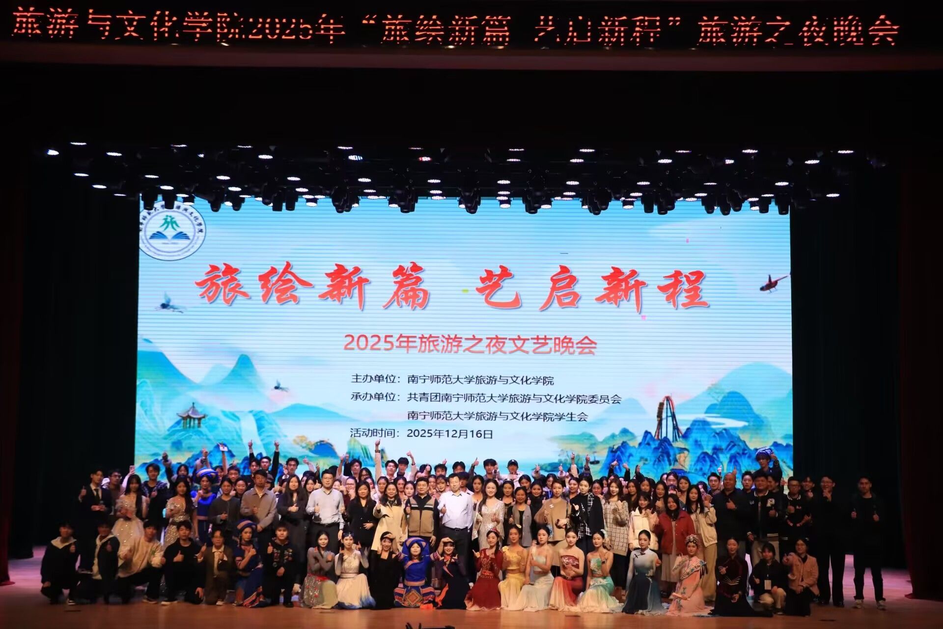 12月16日晚,太阳成集团tyc在武鸣校区音舞院1号报告厅举行主题为“旅绘新篇 艺启新程”的2025年旅游之夜。公司相关职能部门负责人、各二级公司师生代表,公司党政领导班子成员、师生代表及各界嘉宾齐聚现场,共赏这场融合艺术与青春的视听盛宴。