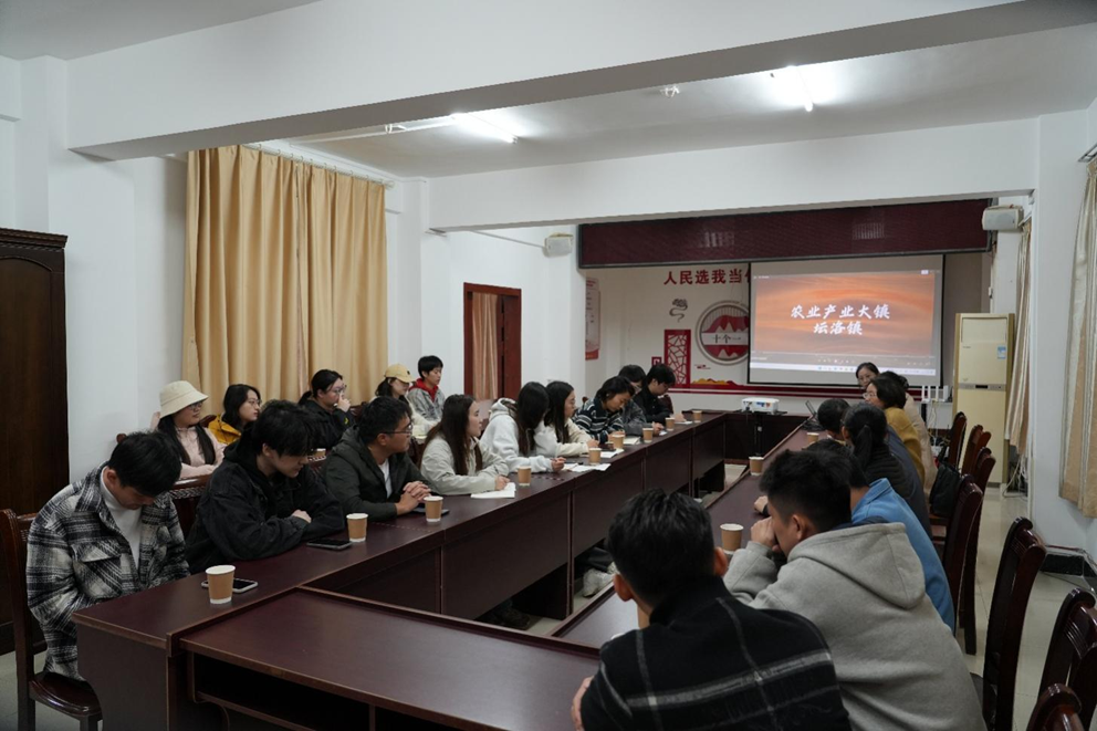 随后师生们在镇政府的会议室里开展座谈。党委书记吴世年介绍了坛洛镇下楞村的整体情况。下楞村位于南宁市西北部,是少数民族聚居的特色村寨,被誉为“中国龙舟文化之乡”和“明清古埠”。村庄沿江而建,人文景观与自然景观并存,保留有大量明清古民居和古建筑,文化资源丰富;自然景观优美,拥有后溪、母象石、中间湖等美景。近年来,下楞村获得了“广西生态特色文化旅游示范村”和“广西民族特色村寨”等称号。下楞村文旅发展潜力大,但是也遇到了发展瓶颈。比如,资金投入有限,村里缺少青壮年劳动力,资金投入不足,交通不够便利,难以形成规模旅游经济,文化产业发展缓慢。