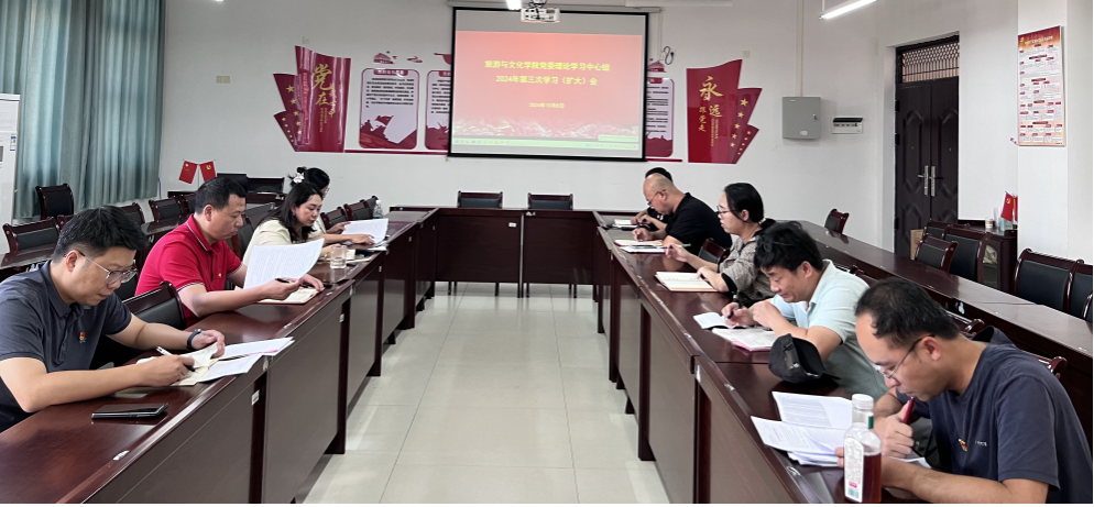 2024年10月8日下午15:00,旅游与文化公司党委理论学习中心组在武鸣校区地信楼B201会议室召开2024年第三次学习(扩大)会议。本次会议参会人员包括公司党委理论学习中心组成员、纪委委员及各党支部书记。