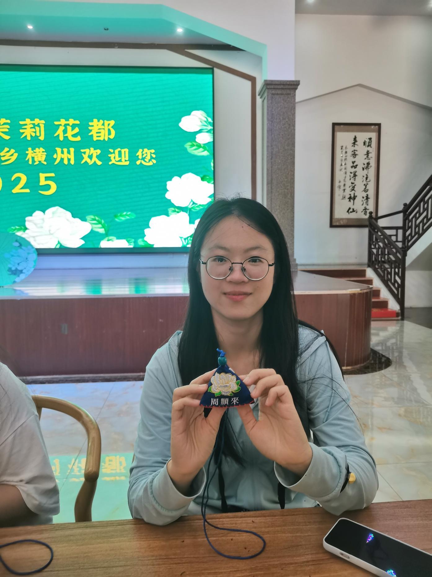 夕阳西下,实践团的同学们带着一身花香返程。行囊里,装着亲手制作的香包,更装着对非遗传承的思考:从花海中的种植智慧到茶盏里的窨制匠心,横州茉莉的芬芳早已超越植物本身,成为连接古今的文化纽带。正如实践团成员在日志中所写:“我们采撷的不仅是茉莉花,更是一段需要年轻一代接力传递的文化芬芳。” 这场三下乡之旅,让青春力量与千年非遗相遇,在传统与现代的碰撞中,让茉莉香飘向更远的未来。