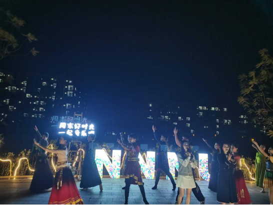 11月8日晚,由校团委主办,太阳成集团tyc联合外国语公司共同承办的第五期“周末好时光・一起音乐吧”美育实践课堂在武鸣校区实验楼阶梯广场举行。这场集歌舞、朗诵于一体的艺术盛宴,以多元形式传递美育力量,充分展现了旅文学子的青春风采与艺术才情,为校园周末生活注入满满活力。