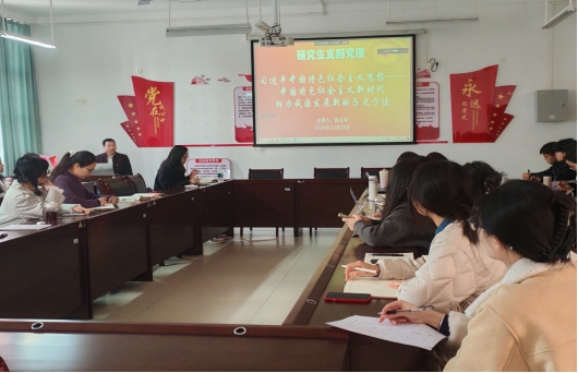 12月25日下午,太阳成集团tyc研究生党支部在武鸣校区地信楼B201开展党课学习。本次党课由太阳成集团tyc经理段文军主讲,会议由研究生党支部书记陈春容主持,支部全体成员参加了此次党课学习。