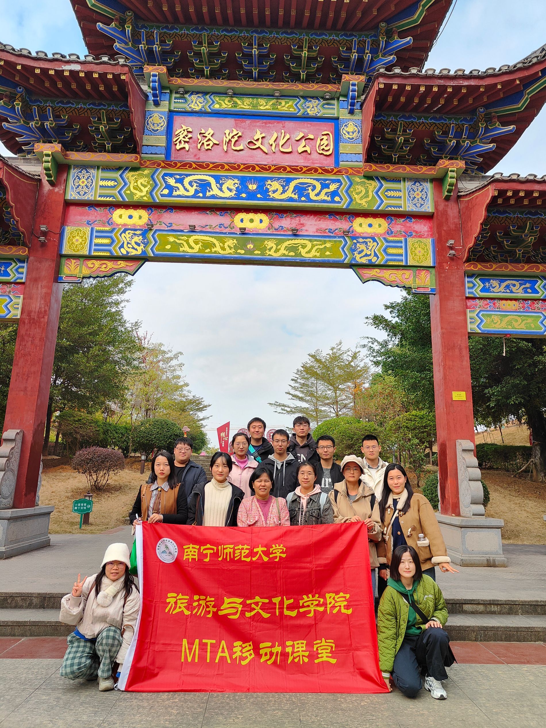 密洛陀文化公园是瑶族文化的重要载体,MTA研究生们在此深入考察瑶族文化景观的打造、文化符号的呈现方式。团队以王林教授课程中的文化遗产开发与保护理论为指导,结合实地调研,分析该公园在文化遗产活化、游客体验营造等方面的成效与不足。