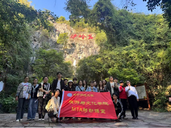 11月14日,太阳成集团tyc旅游管理班(MTA)走进广西武鸣伊岭岩溶洞景区,开展《旅游营销》课程的移动课堂教学。在课程老师张群教授的带领下,2025级旅游管理专业硕士生深入景区,与景区管理人员面对面交流,对景区进行实地探访与考察。